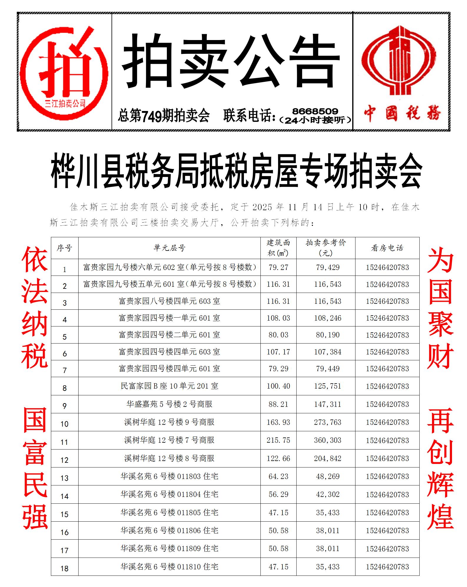 桦川县税务局依物抵税房屋专场拍卖会(2025.11.14)