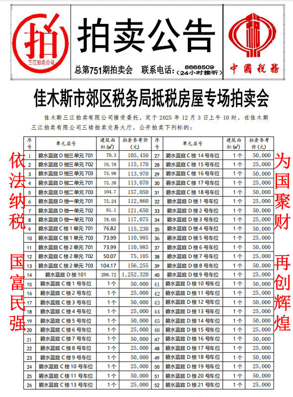 佳木斯市郊区税务局抵税房屋专场拍卖会